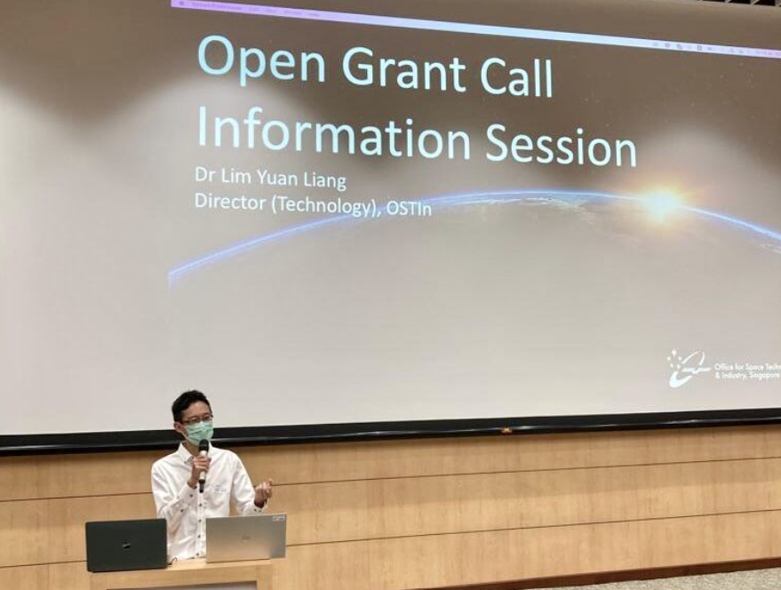 Director (Technology) Dr. Lim Yuan Liang addressing the attendees on what are the themes of the open grant call.